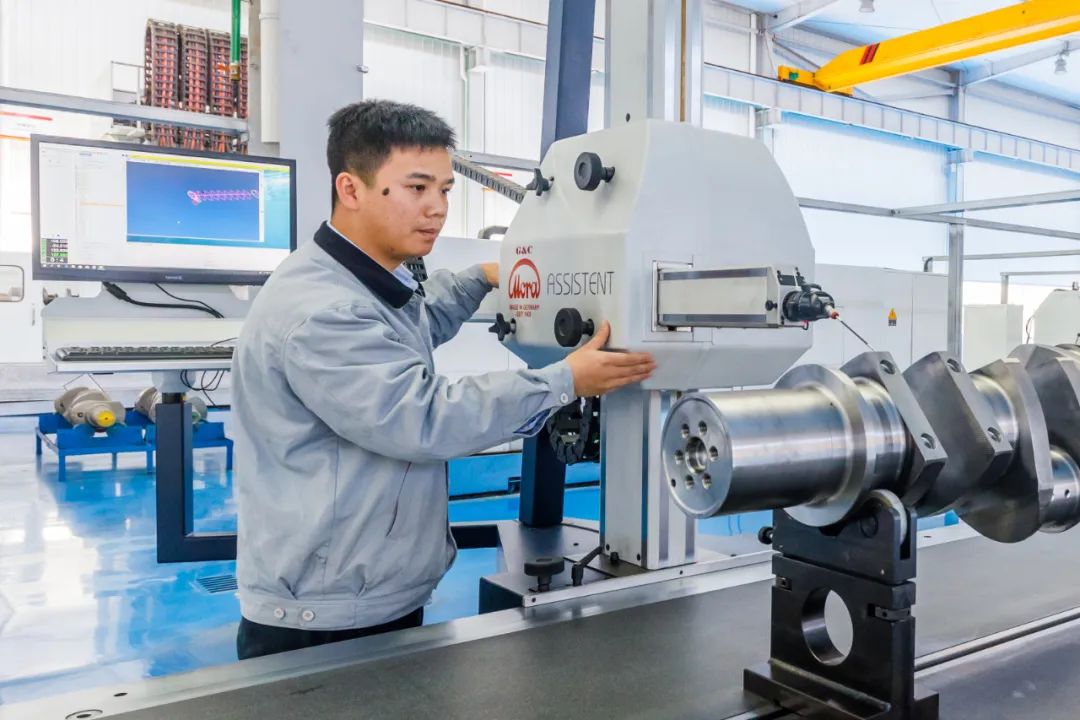 作为公司大型曲轴生产线核心设备的“守护者”,雷国荣长期负责英国兰迪斯磨床、德国勇克磨床等进口高端设备的调试与技术创新。2020年初,新冠疫情导致国外技术团队无法到场调试新引进的兰迪斯磨床,而新产品的样件交付迫在眉睫。雷国荣临危受命,带领团队夜以继日钻研设备编程与工艺参数,通过反复试验优化加工流程,最终自主完成设备调试并成功交付合格样件,不仅保障了客户需求,更为公司节省近150万元成本。这一壮举打破了国外技术垄断,为国产大型曲轴制造工艺的自主化迈出关键一步。